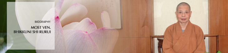 Most Ven. Bhiksuni SHI RURUI is Vice President of the Buddhist Association of China, Vice President of Shanxi Provincial Buddhist Association, President of Wutaishan Bhiksuni Academy and Abbot of Pushousi Monastery in Wutaishan of Shanxi, China. Most Ven. Bhikkuni SHI RURUI was born in Taiyuan, Shanxi in 1959. She studied and received B.A. in Taiyuan Normal College in 1980 and later studied for further education in Beijing Normal University and received M.A. in chinese literature there. When she was young, she once met with Most Ven. Bhikkuni TONG YUAN, former Vice President of both Shanxi Provincial Buddhist Association and Wutaishan Buddhist Association, then she was blessed with the teachings of that Buddhists should practice for all sentient beings out of sufferings by Most Ven. Bhikkuni master, and decided to work for Buddhism in all her life. In December,1981, She became a nun under ordination by Most Ven. ZHI TONG in Fahaisi Monastery in Shaanxi, then went to studied in Sichuan Nunnery Academy and was taught by Most Ven. Bhikkuni LONG LIAN, Aidaotang Nunnery of Chengdu, Sichuan. In August, 1984, she became a Bhikkuni under ordination of percepts by Most Ven. SAN YI, in Shanghuayan Monastery in Datong, Shanxi. Following Most Ven. Bhikkuni TONG YUAN’s teachings of Avatamsaka is the sect, Vinaya is the code of conduct and the pure land is the destination, she reestablished Wutaishan Bhiksuni Academy (WBA) for unfulfilled wishes of the late Most Ven. Bhikkuni TONG YUAN in 1991. In past thirty years, Most Ven. Bhikkuni SHI RURUI kept on studies in vinaya. Whatever conditions and surroundings it was, she could take strict disciplines to both her herself and students with sincerity offerings to triple gems and deep compassions to suffering people as well as following noble teachings of Lord Buddha. In response to development of Buddhism in China, she founded Three-in-one Buddhist educational model in Pushousi Monastery of Shanxi in 2006, with her experienced propagations and teachings in Buddhism for long period time. In the model, the three are organizations of Pushousi Monastery which is a nunnery temple, and Dachengsi Monastery which is a Bhiksuni academy, as well as Puti’aixin Association which is a Buddhist Charity Foundation, the one is a called Qing Tai Nursing Home for senior-aged people as charity unit. In her ideas, Buddhist cultivation is the root of Sangha education with education as an assurance, and charity as the skillful means.The ideas aim to guide sentient beings in awakening to life and harmonizing the world. At present time, Most Ven. Bhikkuni SHI RURUI led Wutaishan Bhiksuni Academy into a new development period of propagation and Sangha education. |
